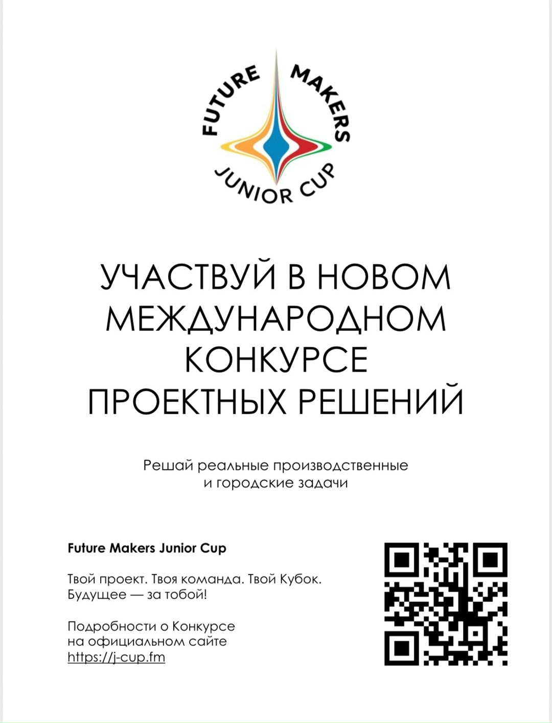 Приглашаем всех, кто хочет не просто учиться, но и применять свои знания на практике! Международный конкурс Future Makers: Junior Cup открывает двери для школьников и студентов, готовых создавать инновационные проектные решения для актуальных производственных и городских проблем.